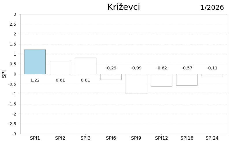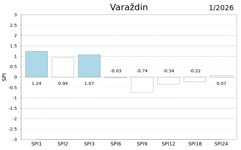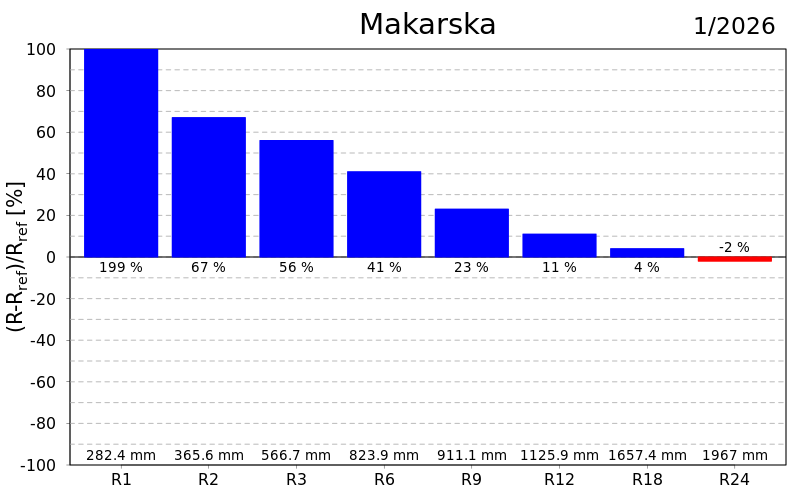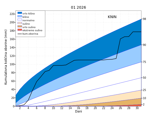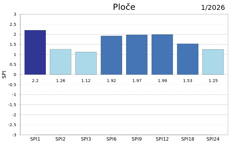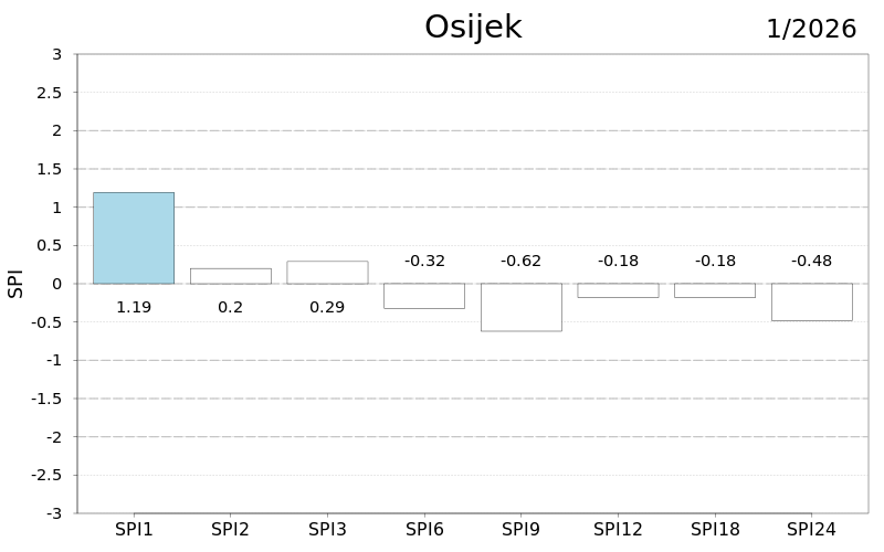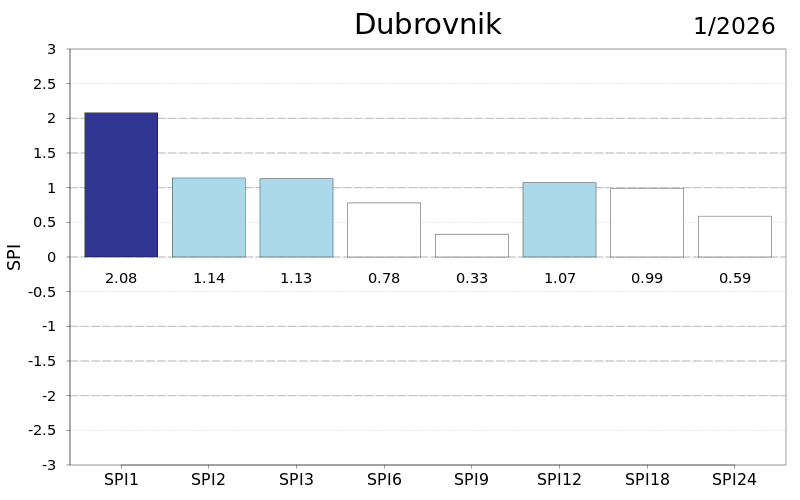 U protekla dva i tri mjeseca u cijeloj Hrvatskoj su prevladavale normalne kišne prilike osim u južnoj Dalmaciji i Varaždinu gdje su zabilježene umjerene, a u proteklih šest mjeseci kod Ploča i Makarske vrlo i umjereno kišne prilike te na Puntijarci umjereno sušne. Na skali od devet mjeseci posebno je vidljiv utjecaj prošlogodišnjih vrućih i sušnih lipnja i rujna u srednjoj i istočnoj Hrvatskoj te kišnih srpnja, kolovoza i rujna u južnoj Dalmaciji.