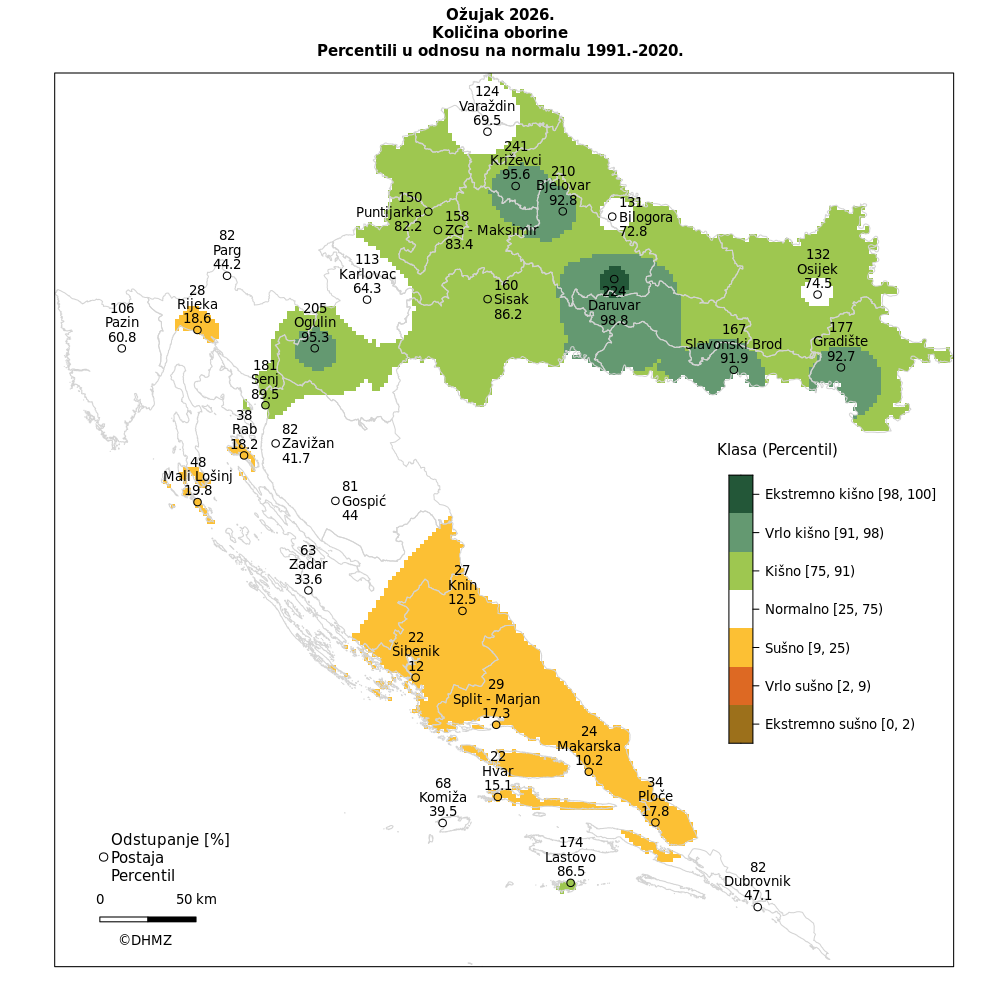 ODSTUPANJE KOLIČINE OBORINE ZA OŽUJAK 2026.